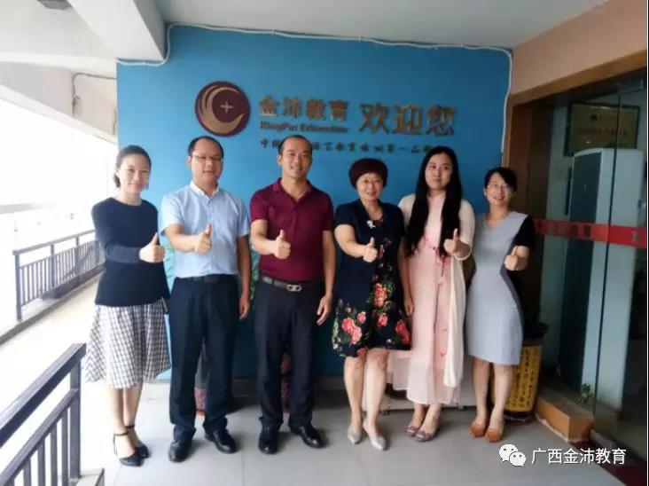 廣西金沛教育國際部團隊與廣西師范學院國際文化與教育學院蔣招鳳副院長(右三)一行合影留念