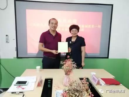 會后,廣西金沛教育執(zhí)行董事粟宥朝向廣西師范學院國際文化與教育學院蔣副院長贈送了吉祥物“金小沛”,蔣副院長也向我司贈送《弟子規(guī)》國際流通版作為紀念。最后,我司國際部團隊與來訪嘉賓合影留念。