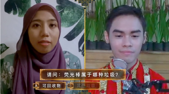 來(lái)自馬來(lái)西亞(左)以及印尼(右)的選手在參加由中國(guó)舉辦的漢語(yǔ)競(jìng)賽《漢語(yǔ)橋》