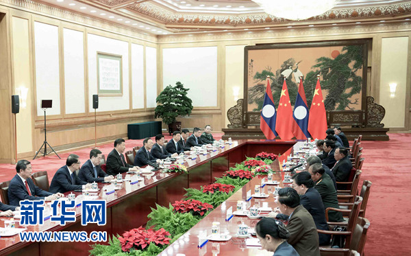 習(xí)近平強(qiáng)調(diào),隨著中老關(guān)系進(jìn)入新的發(fā)展階段,雙方應(yīng)在鞏固命運(yùn)共同體共識(shí)基礎(chǔ)上,聚焦命運(yùn)共同體建設(shè),推動(dòng)其由理念轉(zhuǎn)化為行動(dòng)、由愿景轉(zhuǎn)變?yōu)楝F(xiàn)實(shí),讓中老命運(yùn)共同體落地生根、開花結(jié)果。一要加強(qiáng)戰(zhàn)略溝通,鞏固命運(yùn)共同體政治基礎(chǔ)。中老雙方應(yīng)開展全方位、多層次、機(jī)制性對(duì)話交流,不斷提升互信水平。二要深化務(wù)實(shí)合作,拉緊命運(yùn)共同體利益紐帶。雙方應(yīng)著力推動(dòng)“一帶一路”框架下大項(xiàng)目合作,加強(qiáng)民生和扶貧合作,上下聯(lián)動(dòng),形成中老合作新格局。三要加強(qiáng)安全合作,筑牢命運(yùn)共同體安全防線。雙方應(yīng)加強(qiáng)在聯(lián)合國(guó)、東亞合作、瀾湄合作等多邊機(jī)制中的協(xié)調(diào)配合,有效維護(hù)兩國(guó)共同利益。四要活躍人文交流,夯實(shí)命運(yùn)共同體民意基礎(chǔ)。通過(guò)民間往來(lái)和人文交流,讓命運(yùn)共同體意識(shí)真正扎根到民間、深植在基層。五要重視生態(tài)保護(hù),推動(dòng)命運(yùn)共同體持續(xù)發(fā)展。雙方應(yīng)就生態(tài)和環(huán)保加強(qiáng)交流互鑒,探索打造綠色共同體的新路。