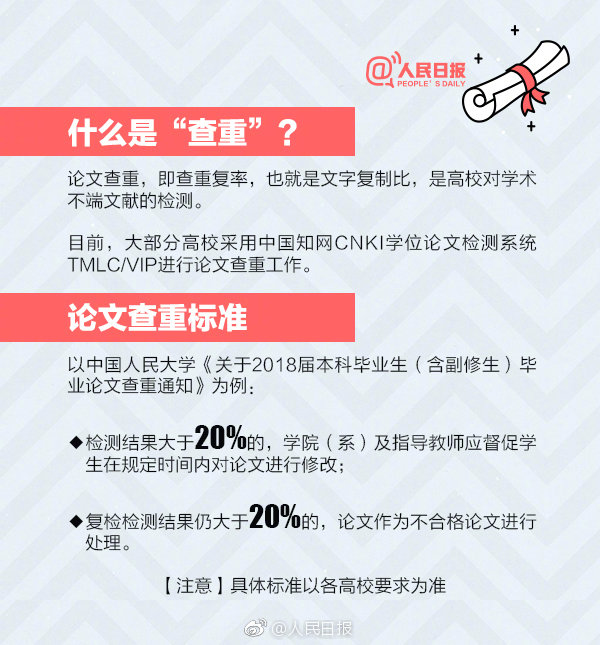 據(jù)調(diào)查,部分學(xué)校畢業(yè)論文“查重率”從原來的30%以內(nèi)降低到20%,更嚴(yán)格的甚至降到了8%以下。還有學(xué)校增加了重審環(huán)節(jié),即對已畢業(yè)學(xué)生的畢業(yè)論文進(jìn)行質(zhì)量跟蹤監(jiān)控,一旦被查出高于查重率,將直接取消學(xué)位證書與畢業(yè)證書。